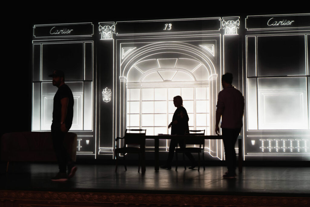 Sous la direction d’Audrey Baldacci, Superbien imagine un décor élégant et contemporain, accompagnant les comédiens dans leur interprétation de Louis Cartier et Jeanne Toussaint. Par le jeu de lumières, de visuels et de mapping, la mise en scène traduit visuellement les symboles forts de la Maison, dont la Panthère, figure centrale de l’histoire.