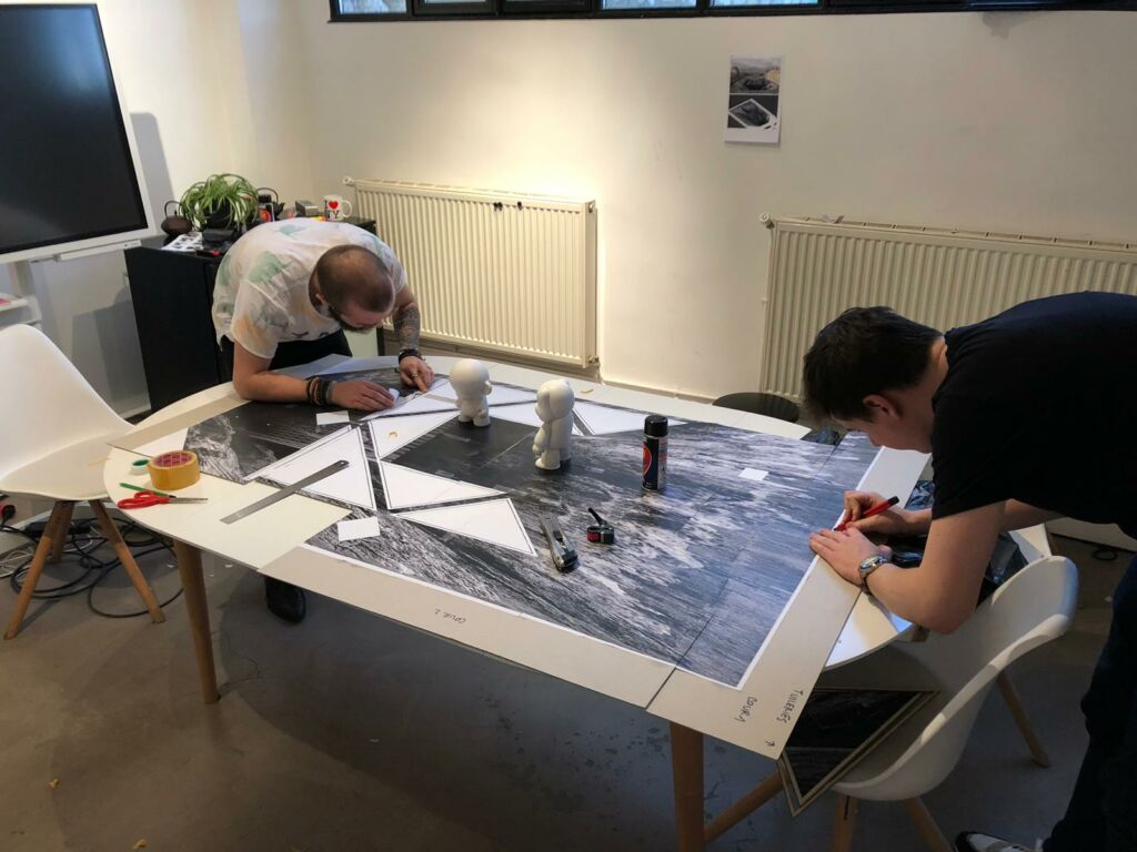 Superbien produced a digital rendering of the courtyard and a 3D model allowing each square meter of the image to be printed. The work is broadcast live via cameras on giant screens. The anamorphosis is also visible from the top floor of the museum.