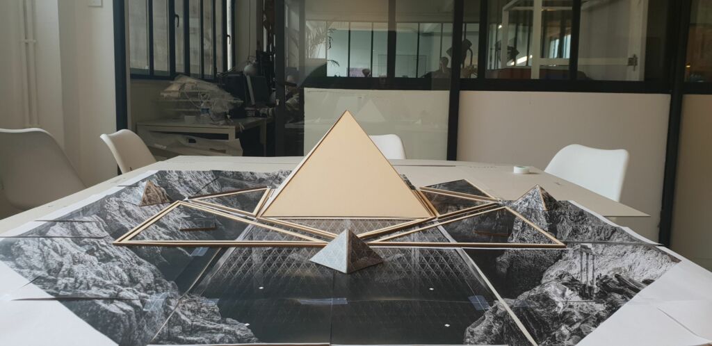To mark the 30th anniversary of the Louvre pyramid, JR has designed an illusionist work revealing a partially buried pyramid. The project is located in a public space with limited visual access, requiring creative solutions to make it visible to all.
