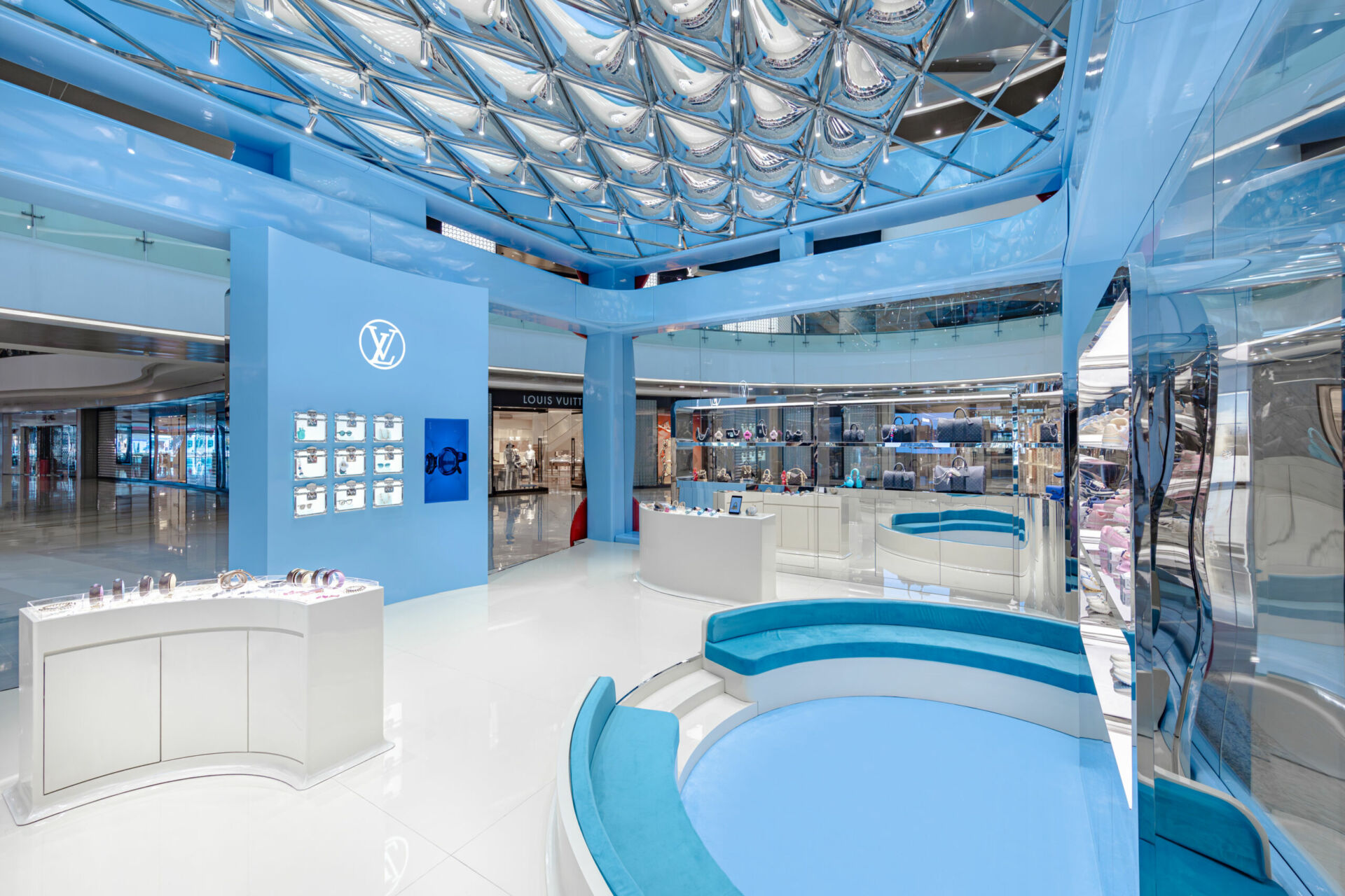 In summer 2024, Louis Vuitton launches an iconic pop-up store inspired by its suitcase in a transparent and colorful version. Located in Beijing, Shanghai, Hangzhou, and Nanjing, the bright space attracts Gen Z with The Vending Machine, an exclusive experience giving visitors the chance to discover and purchase unique fashion items.