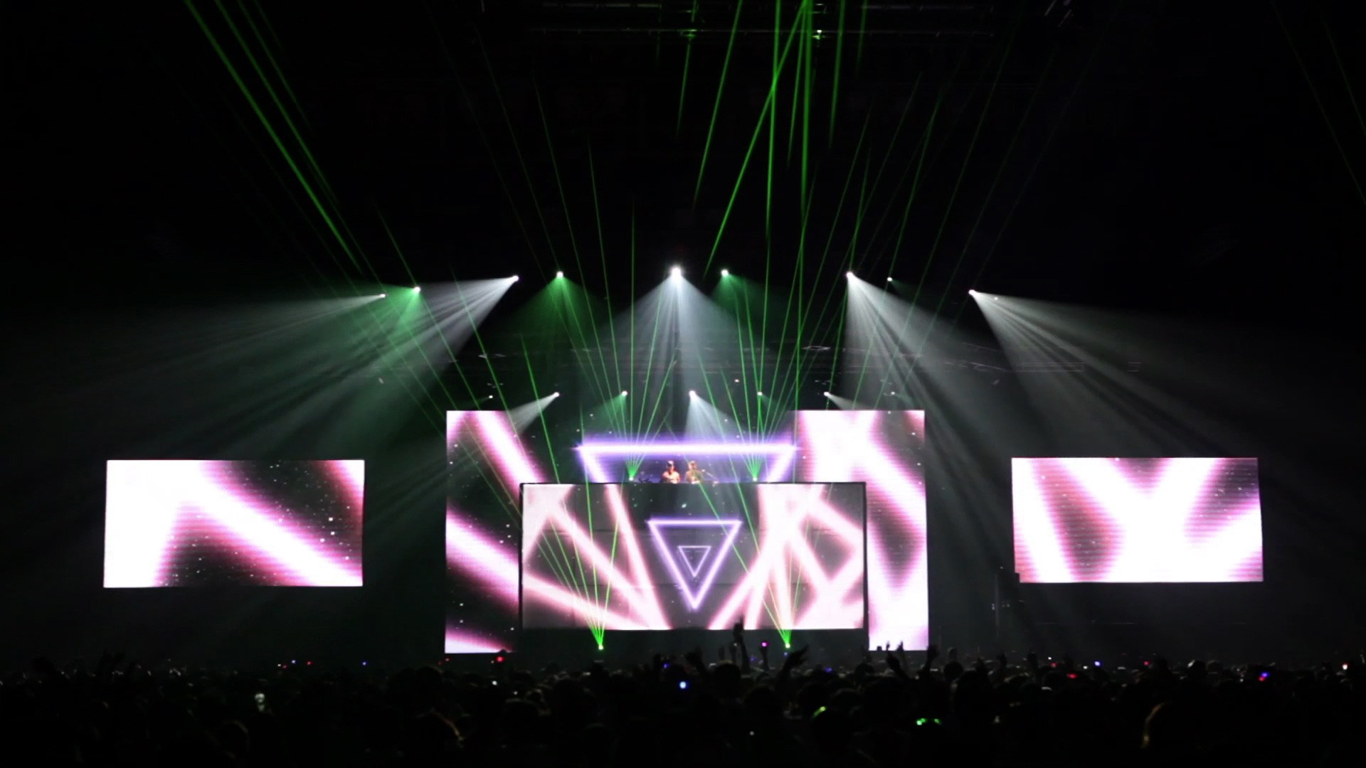 L’univers scénique projette Taku, membre masqué de M-FLO, dans un double numérique. Superbien le matérialise via un jeu de formes et lumières lunaires et psychédéliques.