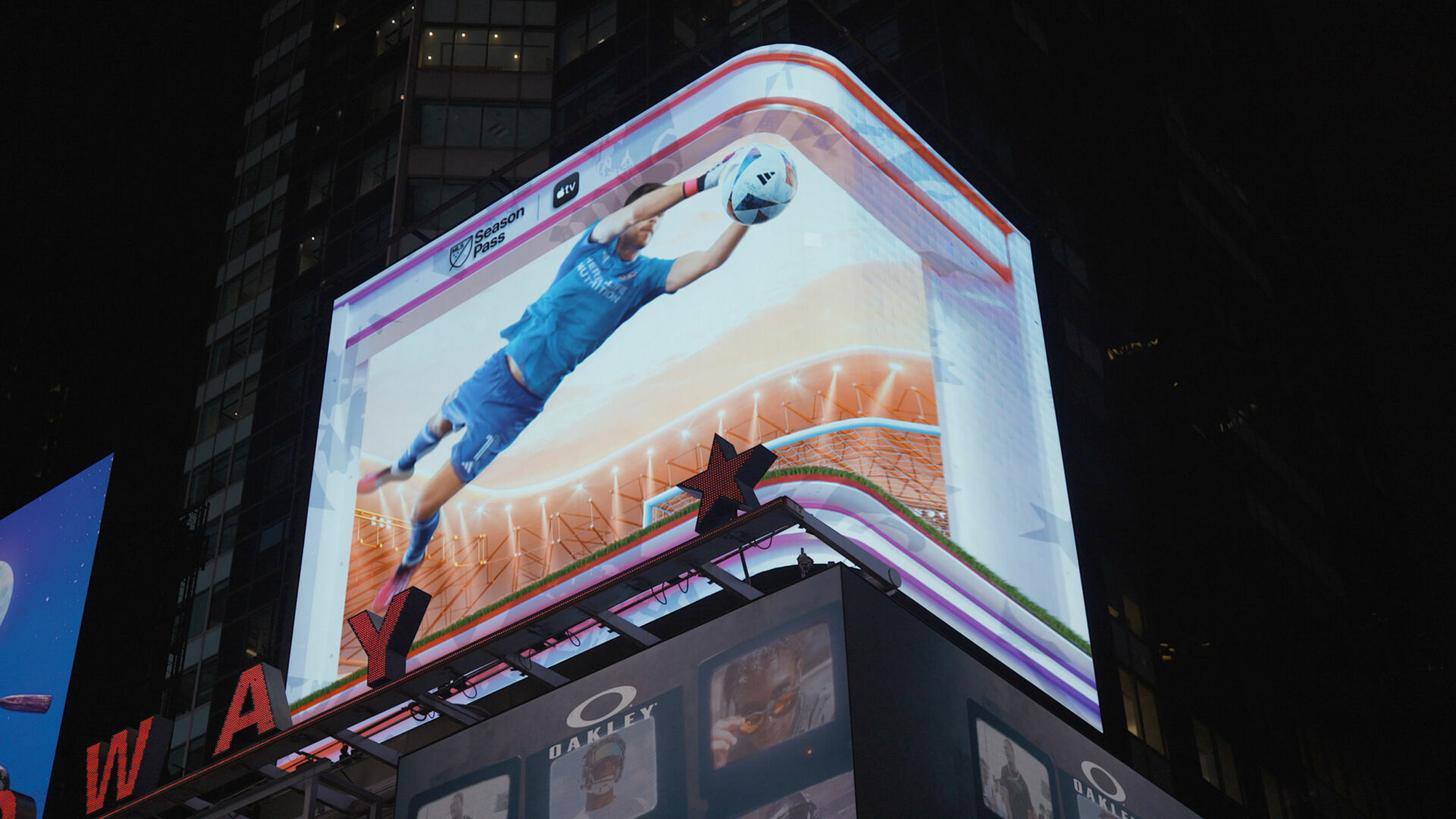 Partenariat MLS et Apple TV+ : un affichage 3D immersif pour promouvoir le streaming des matchs à Times Square.