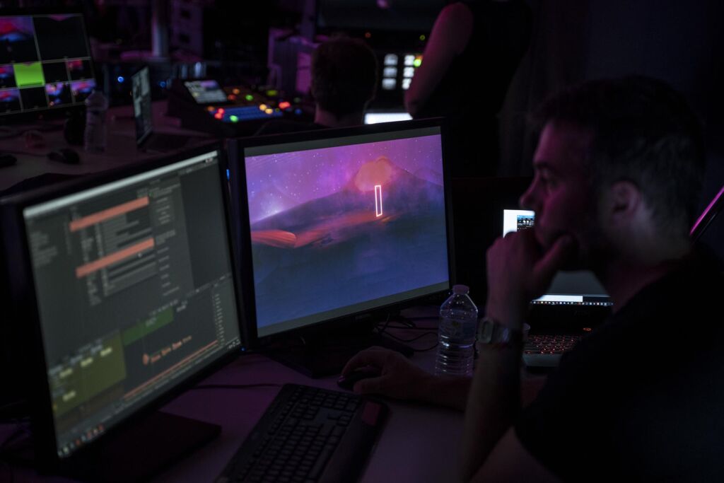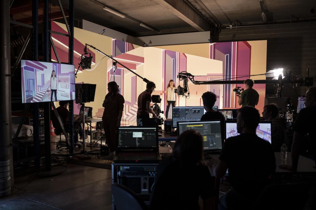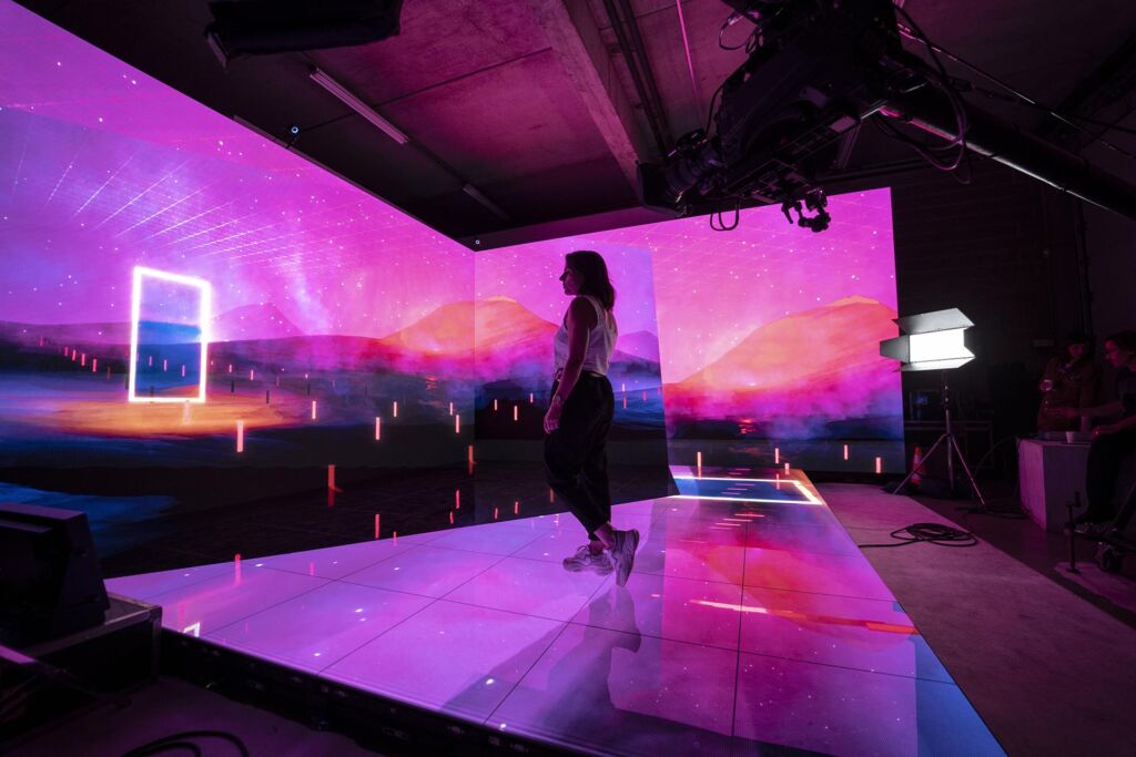 Superbien imagine XR Studio avec ETC : une scène physique entourée d’écrans LED diffusant des décors virtuels, enrichie de technologies vidéo immersives en temps réel.
