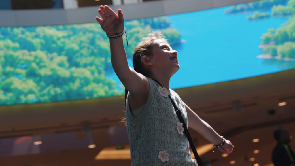 Superbien a conçu un jeu interactif immersif, ludique et coloré dans lequel les visiteurs incarnent un oiseau majestueux qui vole dans un environnement tropical apaisant.