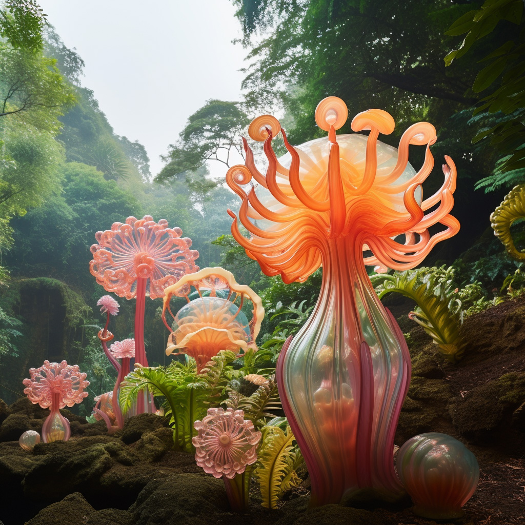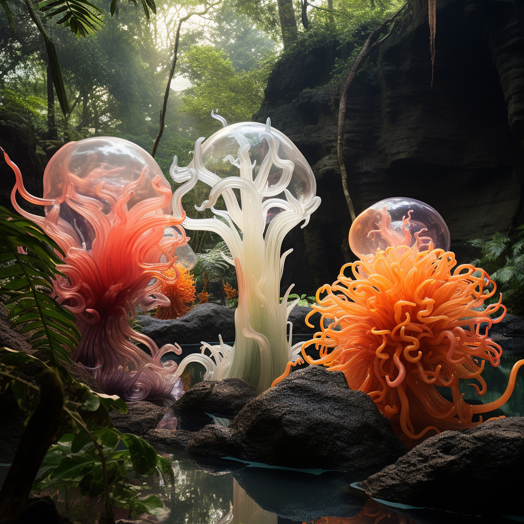 The keywords used to create these floral, celestial, spatial, brutal, comforting, soaring, extraterrestrial and simply wild images are: photogrammetry, 3D, immersive, sharpness, complex details, utopia, molecular, mysterious and texture.