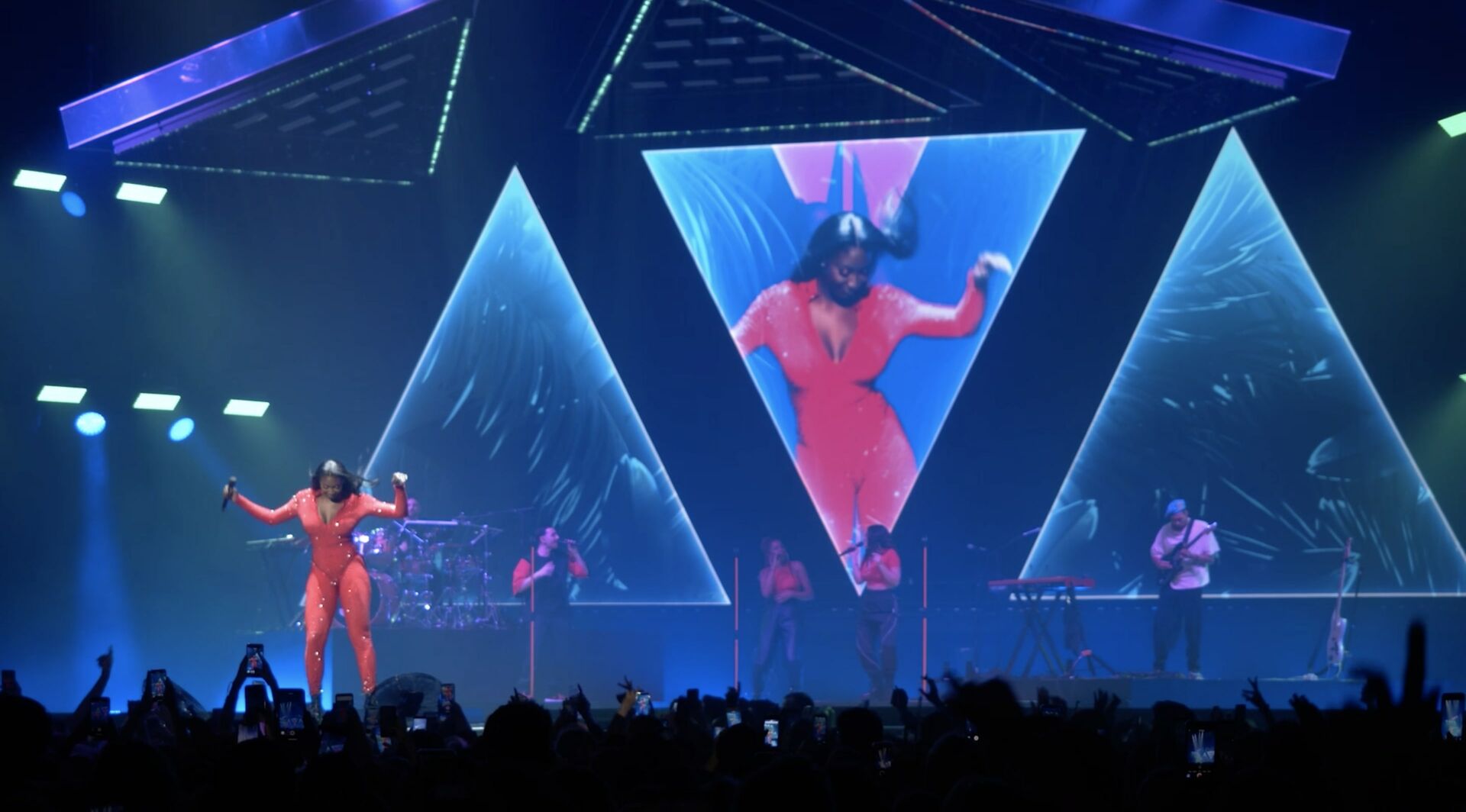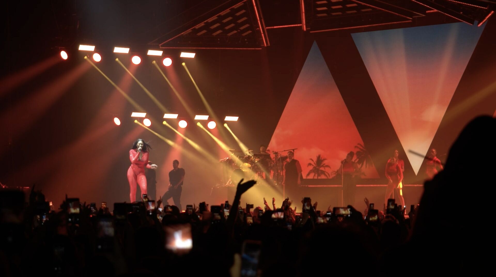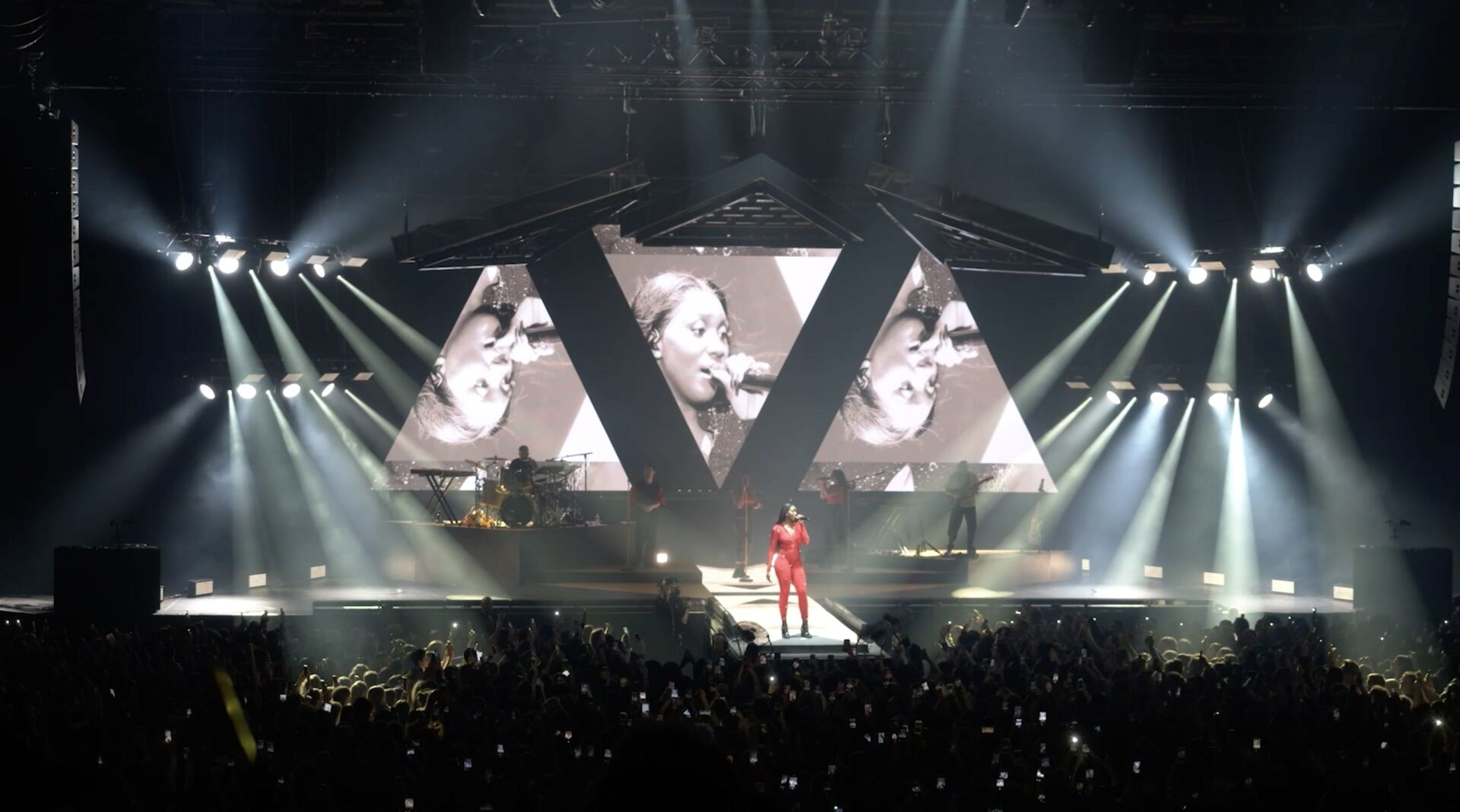 Each visual act mirrors the pulse of the performance—waves of light, dynamic textures, and bold compositions move in sync with the music. This scenographic writing, both technical and emotional, extends Aya Nakamura’s artistic language and draws the audience into her universe.