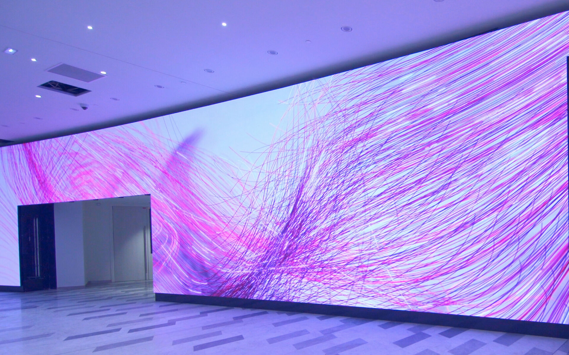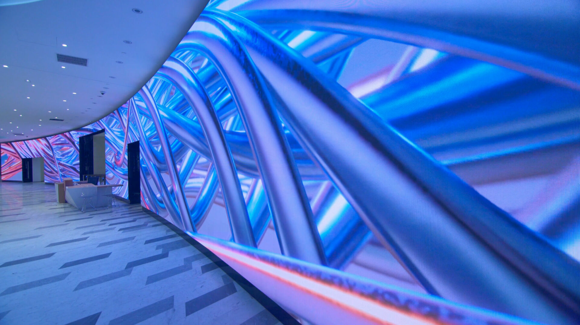 Inspired by the four pillars of the venue (train, innovate, operate, mobilise), the animation evokes protection, connection and virtual worlds. The creation blends into the monumental architecture, transforming the lobby into a technological sensory journey for a secure future.