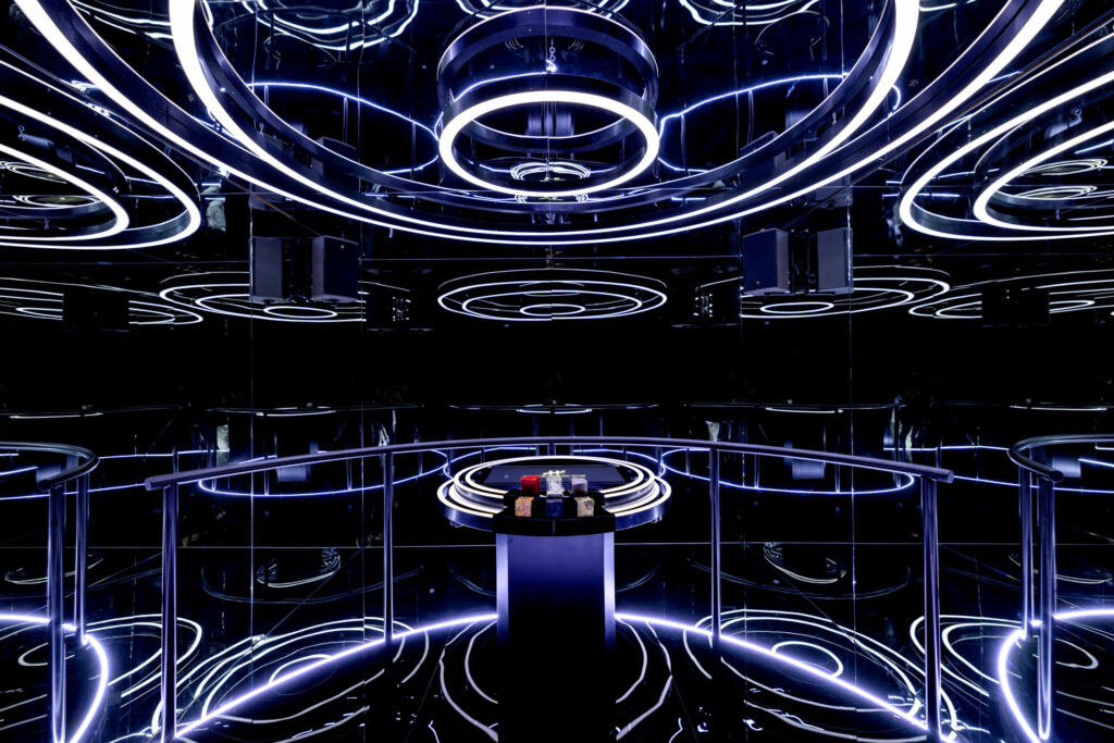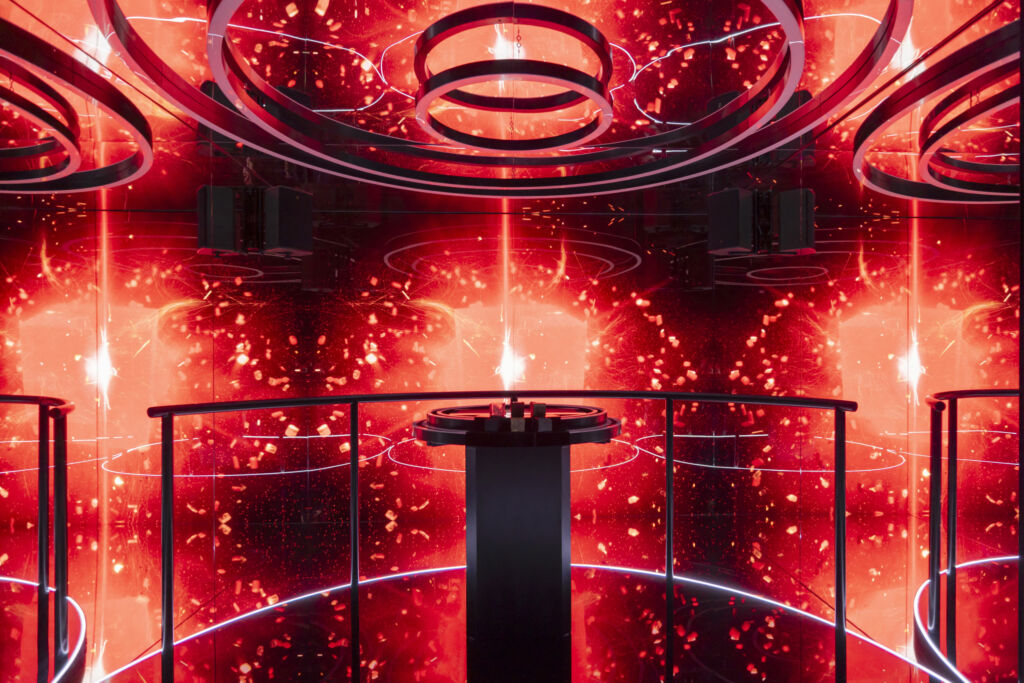 The experience takes place in the Infinity Room. Visitors manipulate iconic brand materials via a touch interface, combining real-time animation, digital interaction and storytelling. Each creation generates a personalized digital artifact for download.
