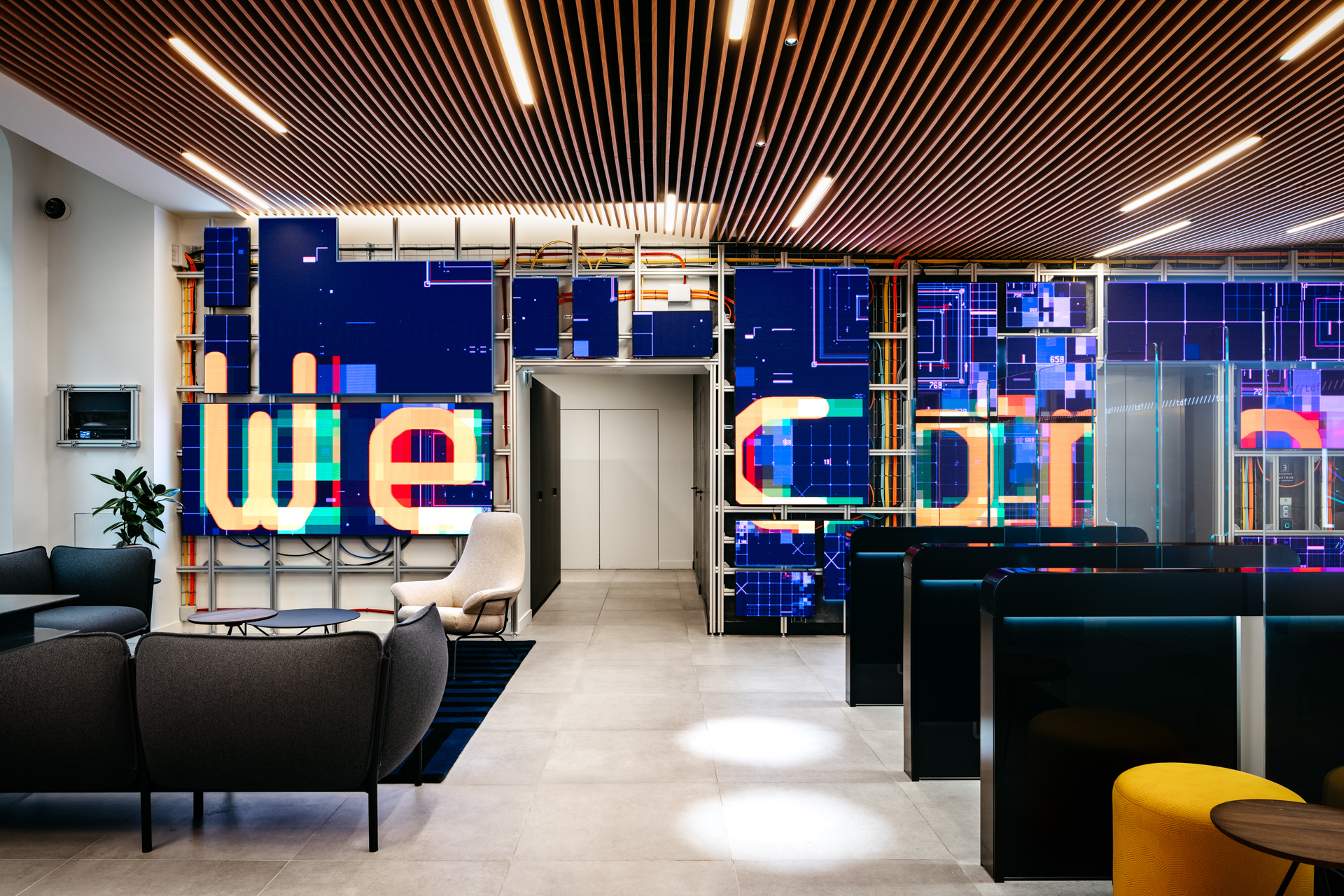 Superbien has designed a generative wall of screens, controlled in real time by data from the building, creating a unique and evolving digital work of art.