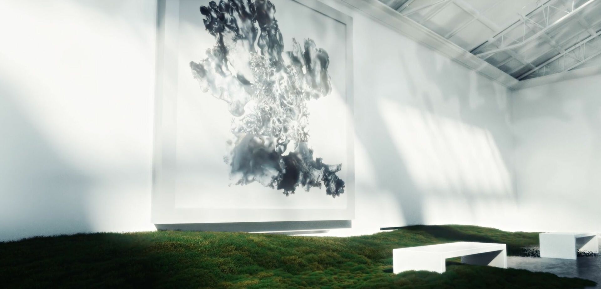 In a minimalist scenographic space, Superbien creates an immersive journey into H24. The exhibition connects the fragrance’s notes, like clary sage, with raw urban textures. Moss, symbolising nature in motion, gradually covers the architecture, merging organic and concrete worlds.