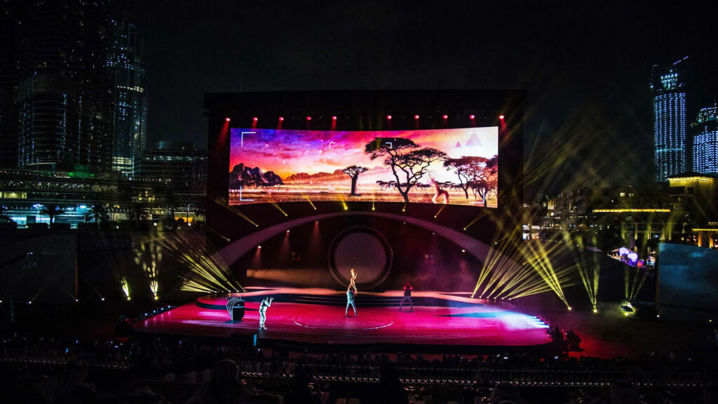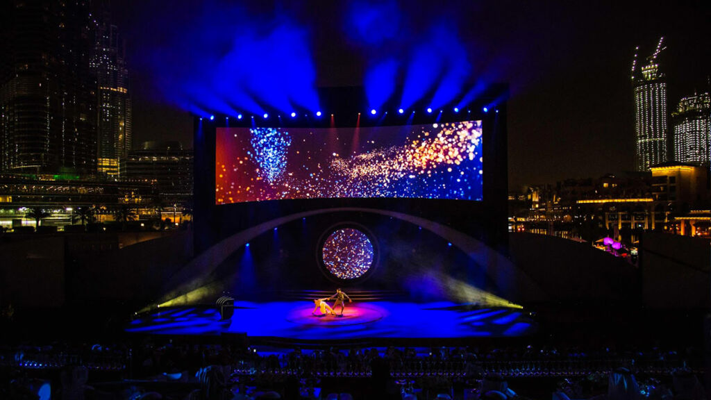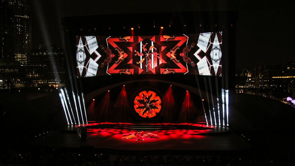 The scenography evolves to the rhythm of an exhilarating choreography, reinforced by powerful visual projections. The mapping transforms the space into a vibrant spectacle, reinforcing the cultural impact of the event.