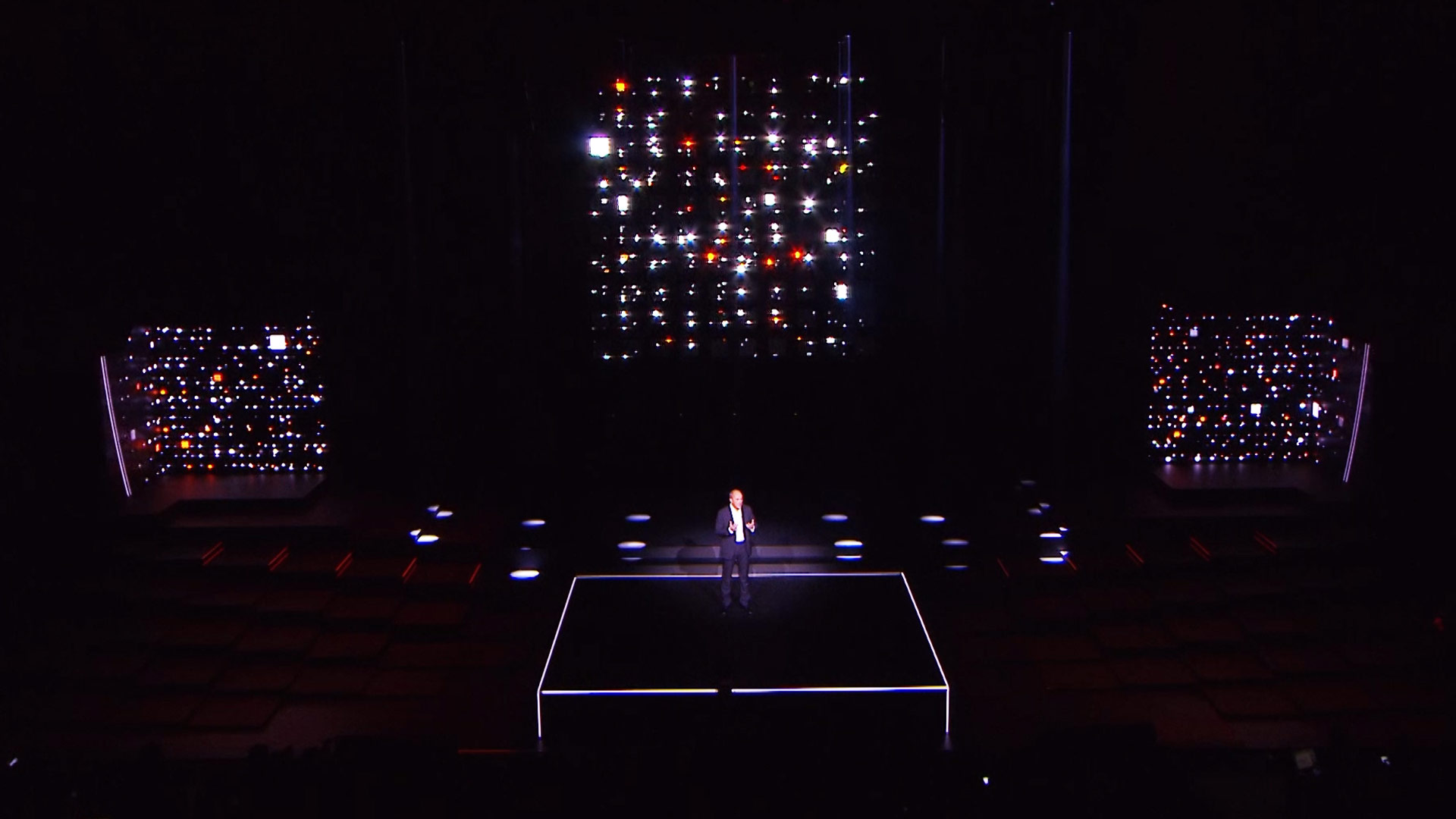 The installation uses large-format projections synchronised with interactive animations in real time. This device showcases Orange's innovative technologies through a unique multisensory experience. It engages participants emotionally while conveying the brand's forward-thinking vision.
