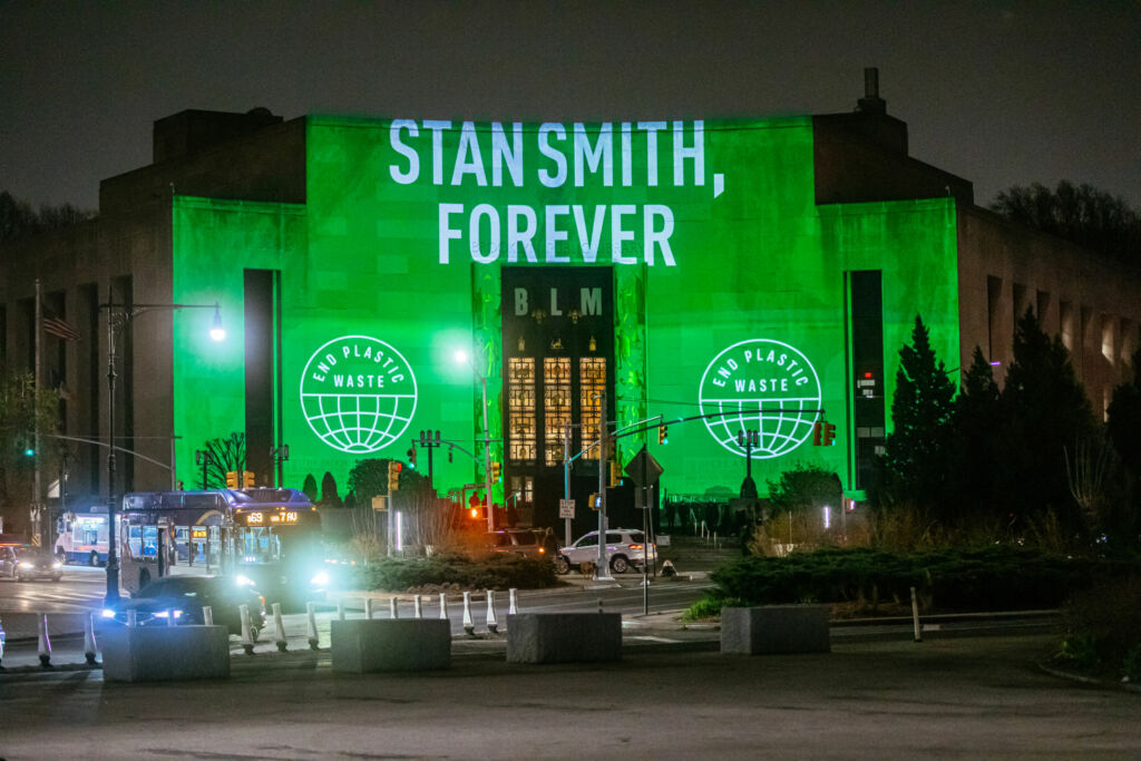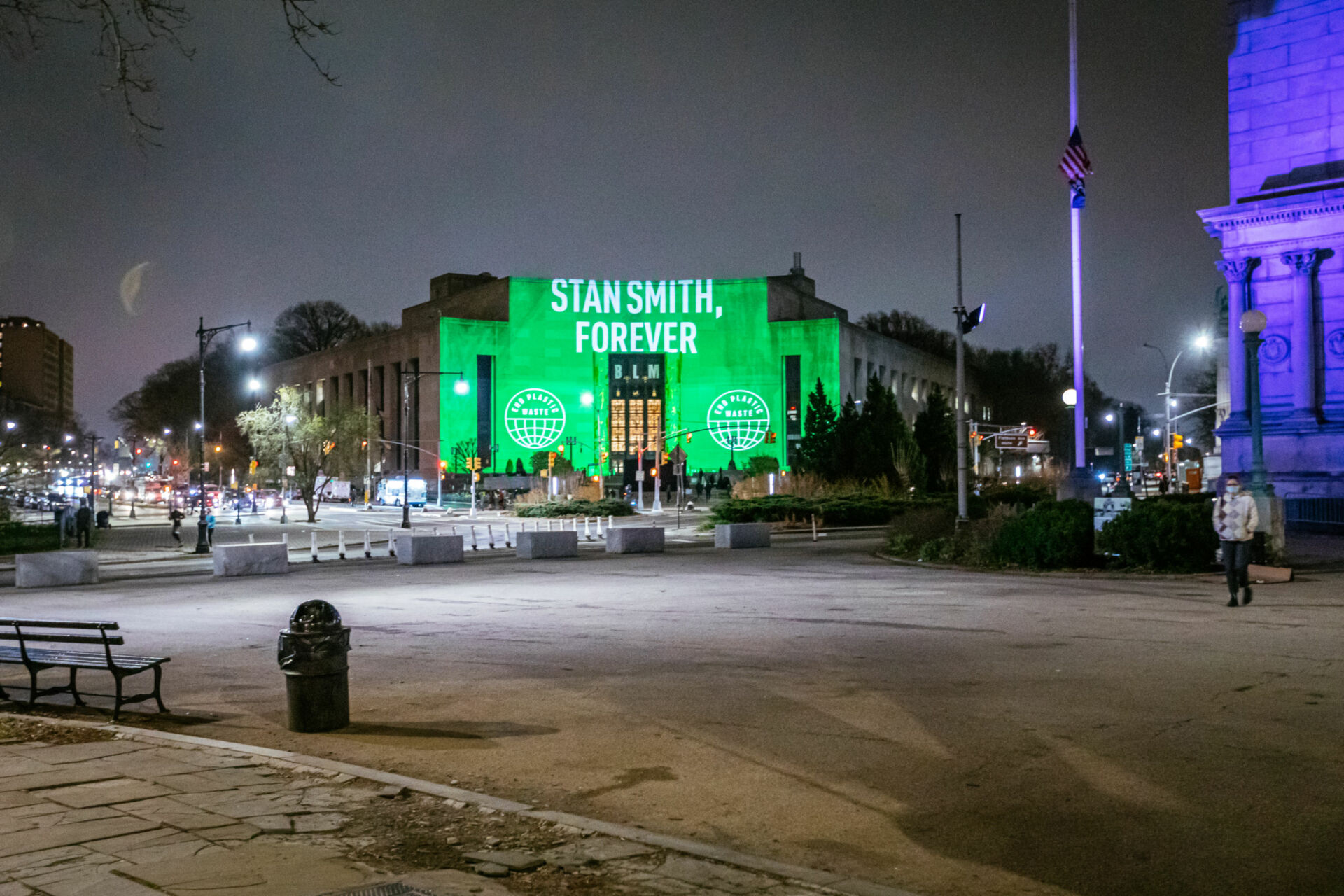 Monumental projection to celebrate Adidas' commitment to the environment in New York, with content created by Superbien.