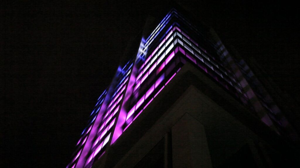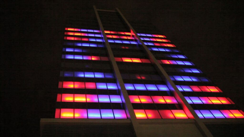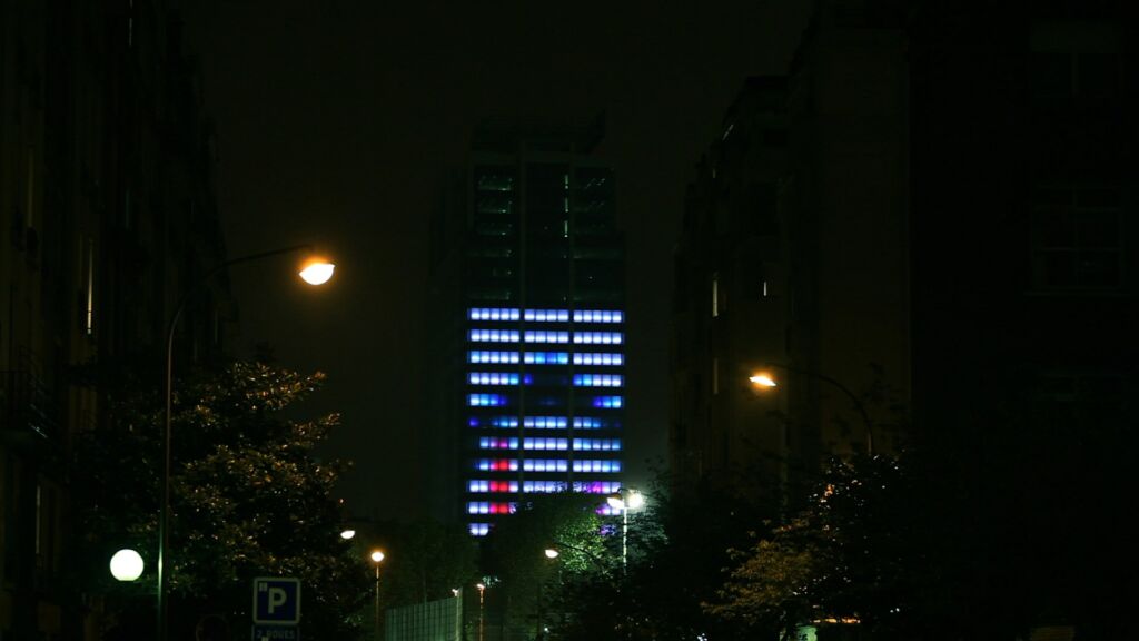 The show transforms every pixel of the façade into a window on a world in motion. To the electro beats of Yuksek, synchronized visual waves merge with the light design and abstract narrative, revealing all the energy of the neighborhood.