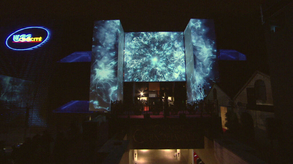 Superbien created a magical mapping combining excerpts from the film and 3D animations projected onto the façade of the UGC for total immersion.