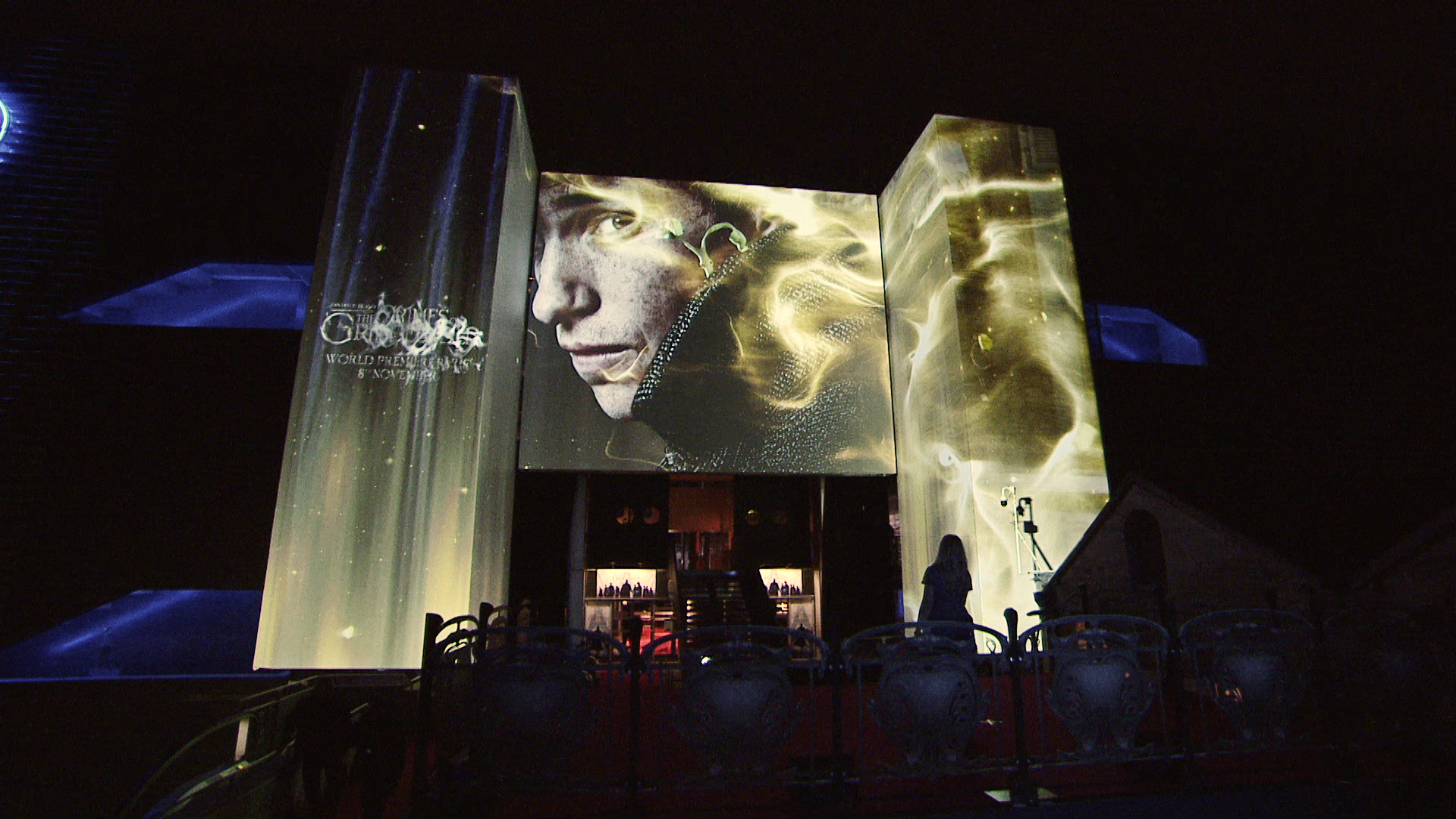 The mapping was the highlight of the evening, accompanied by speeches from the actors. The event was shared live online, reinforcing the media reach and engagement around the Fantastic Beasts saga.