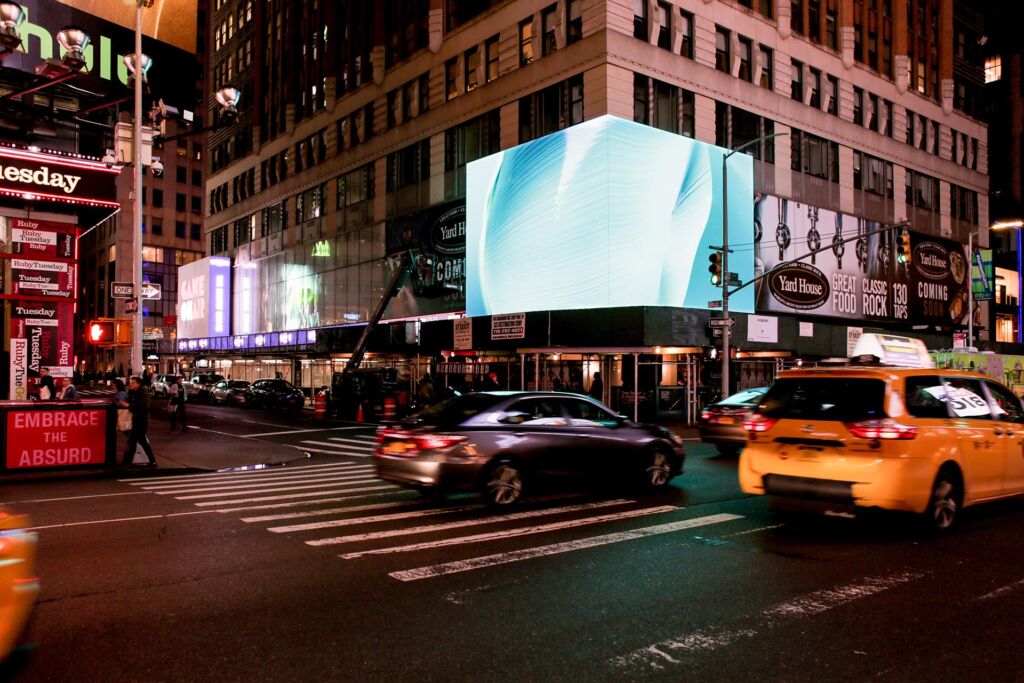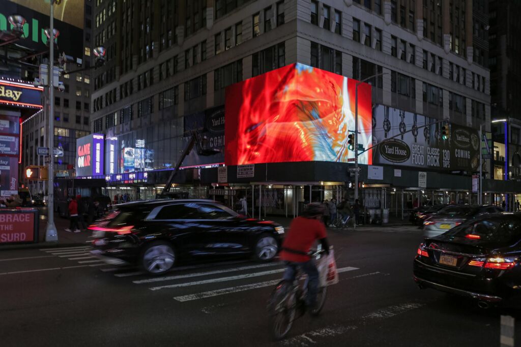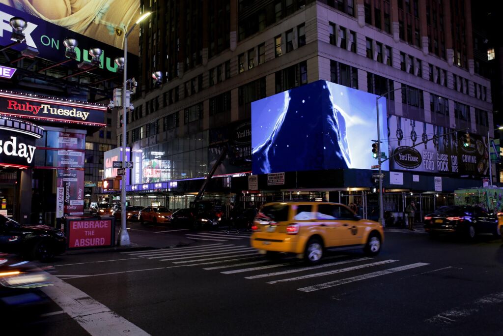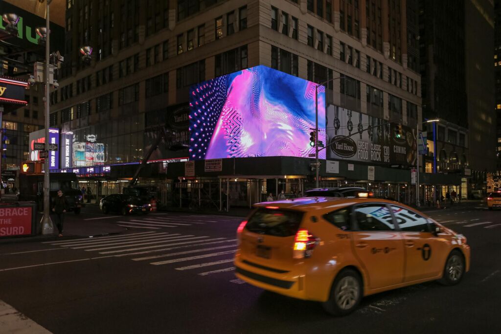 Thanks to the visual power of Times Square's giant LED screen, the installation catches the eye of passers-by, questions our relationship with life and technology, and affirms the place of digital technology in the urban cultural space.